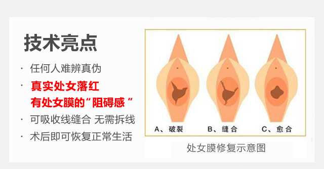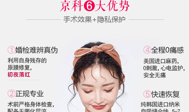 韩式微创无痛处女膜修复技术是妇儿堂医院私密整形中心引进的韩国最新专利技术,我们根据处女膜破裂的不同程度,采用纯韩国进口纳米自吸缝合线,主任级以上医师亲诊精细缝合,术后100%落红。无痛苦、不留伤疤、无副作用,完美修复破裂的处女膜,让你拥有完美的爱情和婚姻。